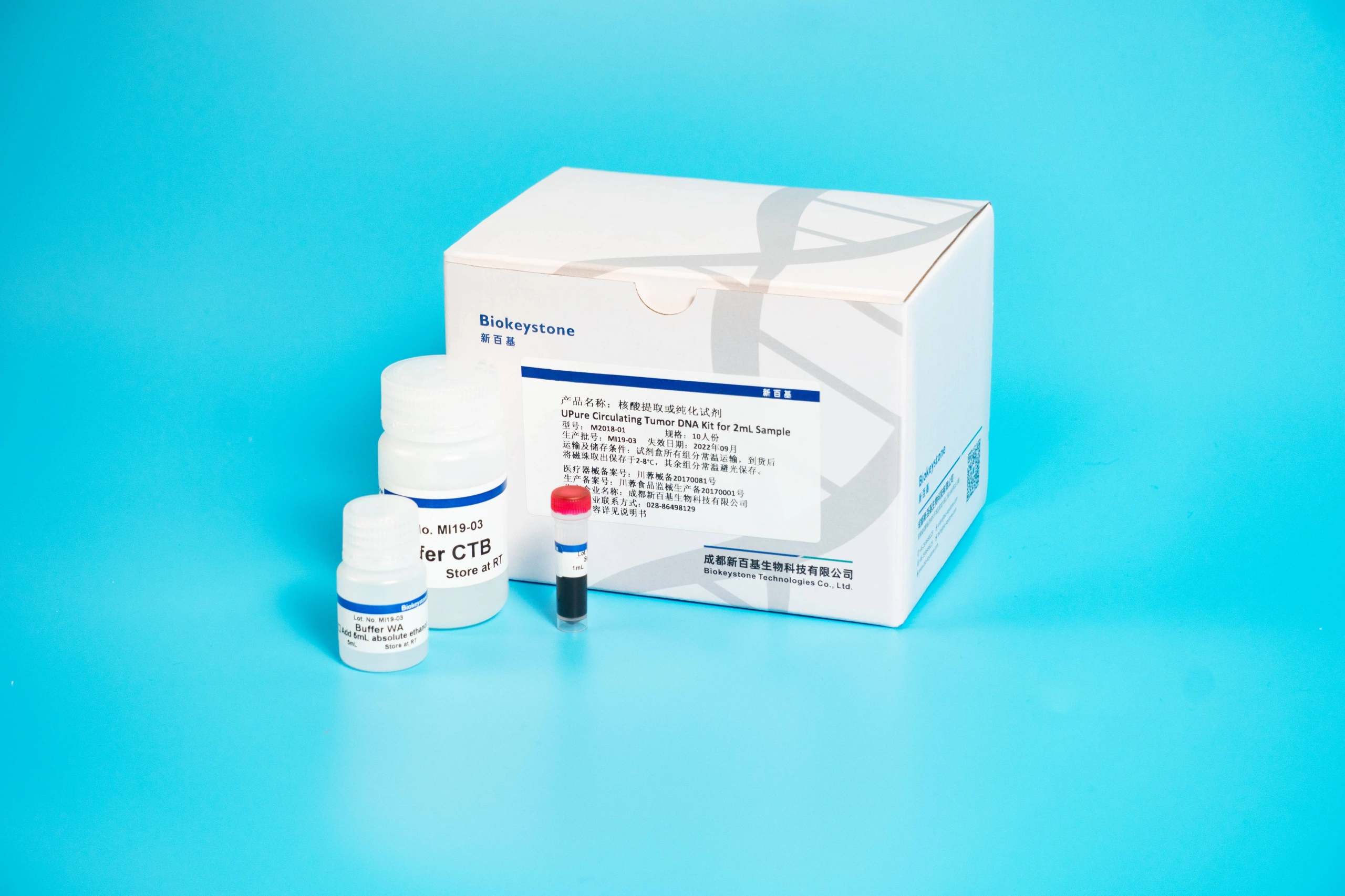 在正常人血浆中存在少量的游离DNA,其主要来源为凋亡细胞,片段大小主要在180-200bp左右或其整数倍。近年来的医学研究表明,肿瘤患者的血浆游离DNA水平会高于正常人,其片段大小从几十至上万bp不等,且其DNA片段具有肿瘤细胞DNA特征,通过游离DNA的分子生物学分析,可以应用于肿瘤的早期诊断,个体化治疗及预后判断等方面。新百基试剂盒通过特殊的缓冲液及磁珠包被技术,可以有效的从2-5ml肿瘤血浆样本中提取纯化游离DNA产物,并可直接应用于下游二代测序,定量 PCR,数字定量PCR等检测。做网站/品牌推广/SEO优化就找橙鱼传媒