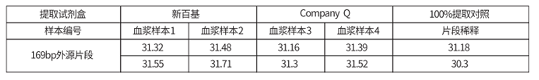 产品应用2:在阴性血浆中加入169bp的外源DNA片段,定量检测提取效率: