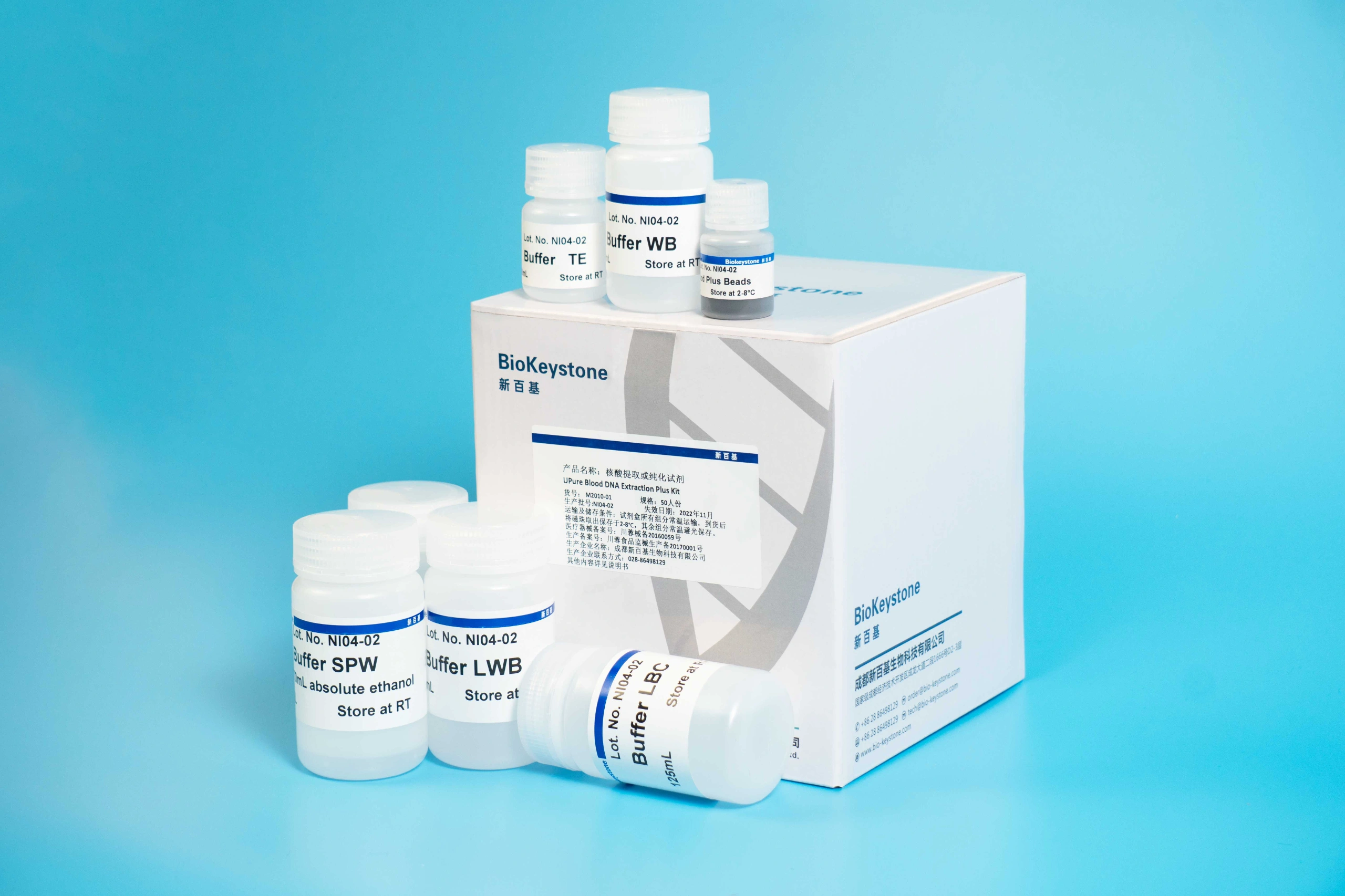 UPure Blood DNA Extraction Plus Kit是一款专为大体积(>2ml)全血基因组DNA提取设计的磁珠法提取试剂盒,大体积全血样本经红细胞裂解液预处理获得白膜层后,可直接用于各类自动化核酸提取纯化系统。