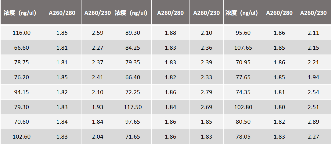 产品应用:取24份200µl冷冻血液样本,使用NPure Blood DNA Extraction Kit提取基因组DNA,100µl洗脱液洗脱。