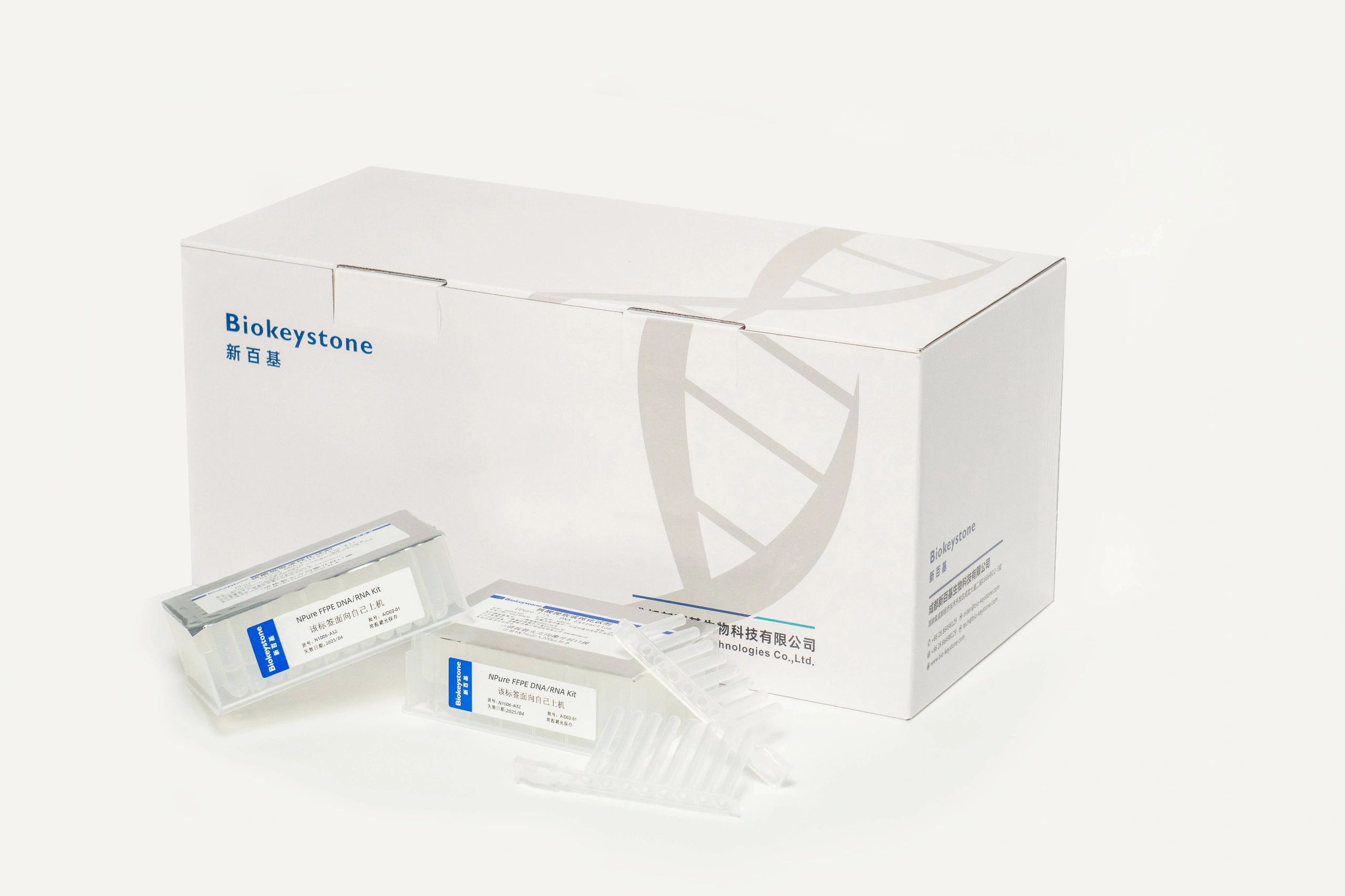 新百基FFPE DNA/RNA 提取试剂盒(NPure FFPE DNA/RNA Kit)是一款可以从一份 FFPE 样本中同时提取纯化DNA和RNA 的试剂盒。本试剂盒含有分别捕获DNA和RNA的磁珠,通过新百基特别设计的缓冲液和简便高效的流程,可从一份FFPE样本中,分别得到RNA和DNA产物。本试剂盒无需脱蜡,不含氯仿、苯酚、二甲苯以及巯基乙醇等有毒有害物质,兼容各种常规自动化提取仪,纯化得到的FFPE DNA和RNA产物,质量优,具有同一性,可以直接用于下游应用。