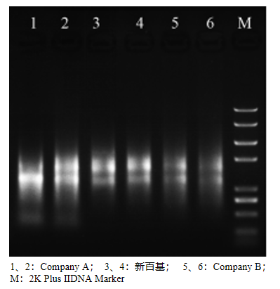 产品应用:取包埋6个月的兔肝石蜡切片按照不同品牌试剂盒的流程进行提取,提取的产物进行浓度测定、电泳检测和RT-qPCR检测。